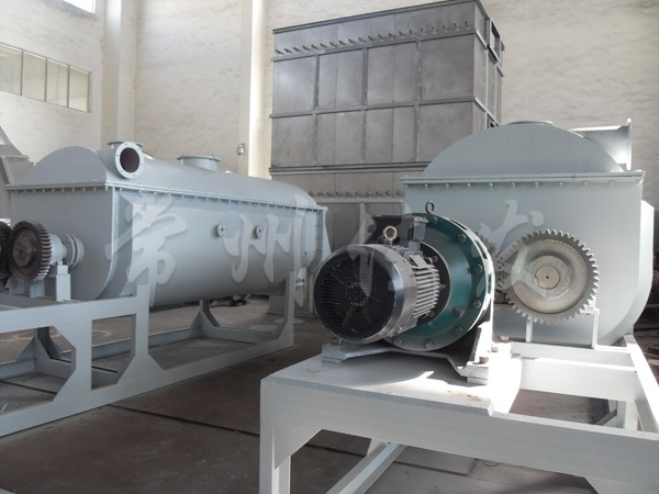 槳葉式干燥器分為熱風(fēng)式和傳熱式。熱風(fēng)式即通過熱載體(如熱空氣)與被干燥有物料相互接觸并進(jìn)行干燥,在傳導(dǎo)式中熱載體并不與被干燥的物料直接接觸,而是熱表面與物料相互接觸。傳導(dǎo)式的優(yōu)點是物料不易被污染,排氣量小,熱效率高,體積相對小,有利于節(jié)約能源及防止空氣污染。