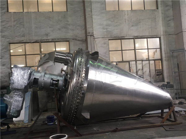 錐形螺帶真空干燥機(jī)是一種利用螺帶將物料旋轉(zhuǎn)提升及圓錐夾套、空心螺帶內(nèi)同時(shí)通入傳熱介質(zhì)(如熱水、導(dǎo)熱油、蒸汽等),使加熱后物料從四周提升并從中間下落,快速不斷的循環(huán)翻轉(zhuǎn),并通過筒體內(nèi)抽真空將水汽及時(shí)帶走。