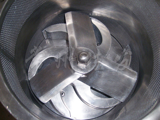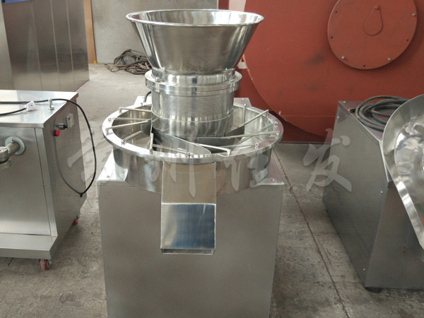 本機(jī)是通過一組旋轉(zhuǎn)碾刀,將前道工序制成的濕材注入環(huán)碾刀的不銹鋼篩筒篩孔中,從而制成圓柱狀的濕顆粒,供下道工序拋丸使用。本設(shè)備可通過更換不銹鋼篩筒來取得不同大小的顆粒。
